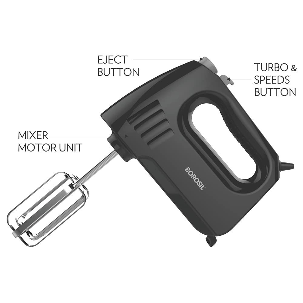 The Borosil Smartmix Hand Blender is for those who really love their cooking. It comes with chrome finished dough hook and a beater attachments - the dough hook can be used for kneading all sorts of doughs, attas and batters, while the beater attachment can be used for regular whisking and blending. There is a container for these accessories so that you will never have to go hunting in drawers to find them! The Smartmix Hand Blender comes with 5 variable speed options and turbo button, so you can adjust your speed based on your needs. The powerful 300W motor ensures that you will never need to look elsewhere for anything that needs to be blended, kneaded or whisked again!