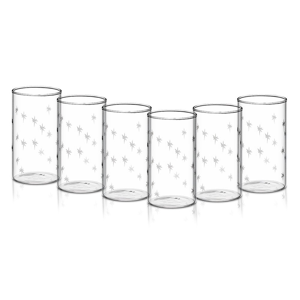 The star motif etched into the glass can add a dash of spark to any occasion, or even to just brighten your day! This 100% borosilicate glass will retain its sparkle after years of repeated use and is a perfect addition to your glass collection! The glasses are microwave and freezer safe, making them convenient along with being so incredibly beautiful.