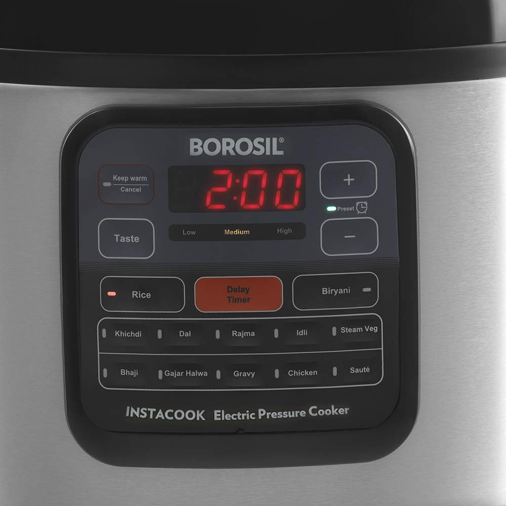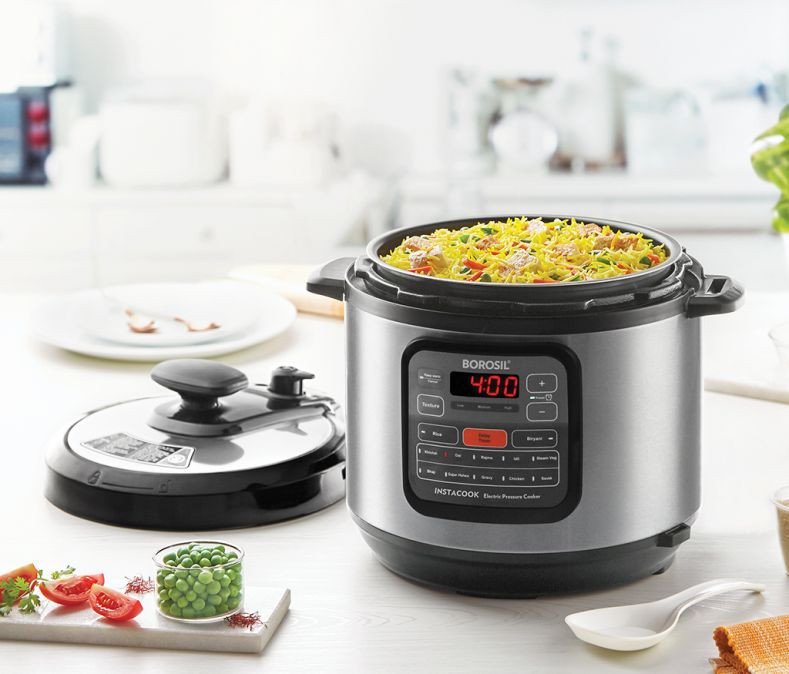 Borosil Instacook cooks your favorite Rajma /chole/Rice/Biryani or any other sabzi can be cooked with no hassles of counting whistles. It also ensures the vitamins and nutrients of the food is protected through pressure cooking technique.