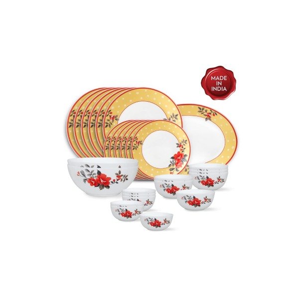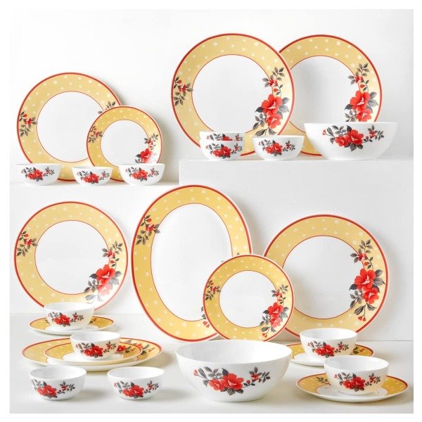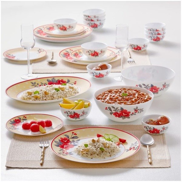 Borosil Pack of 27 Opal Glass Kohinoor Pink Sapphire Dinner Set-(Microwave Safe)