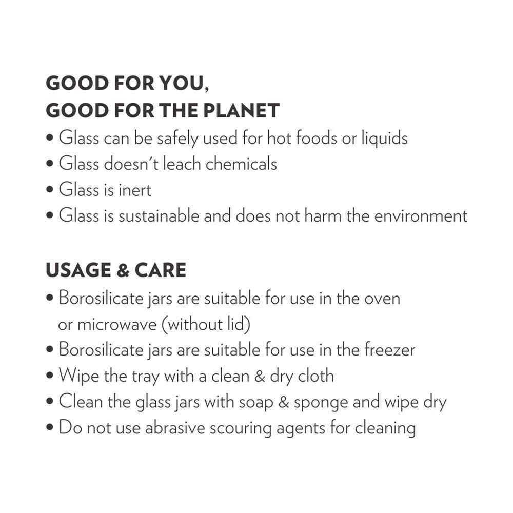 - Unlike plastic or ordinary glass, will not leach chemicals into your food even after repeated usage