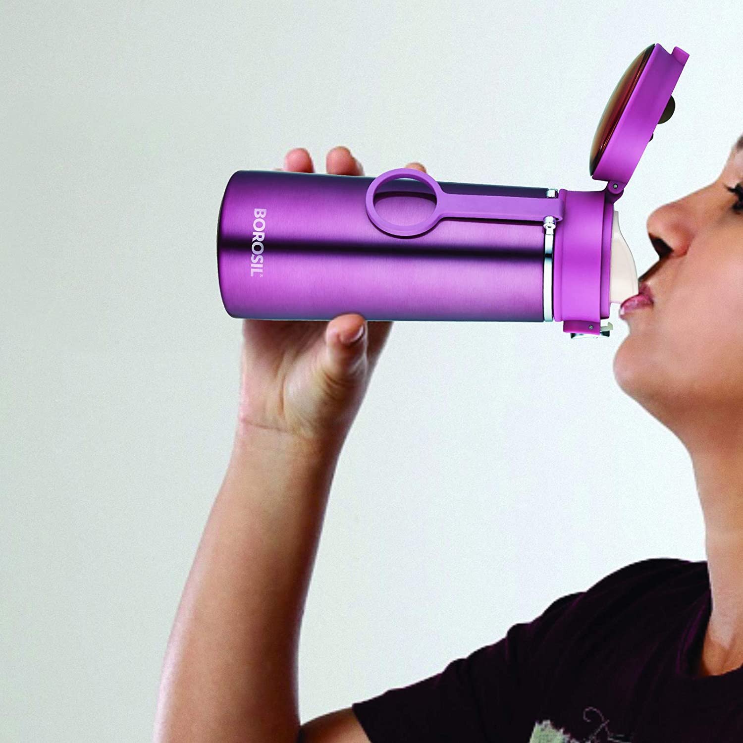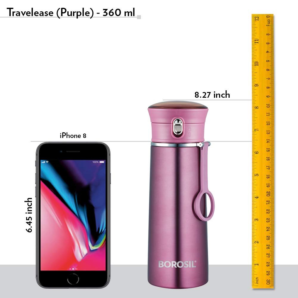 Borosil Stainless Steel Hydra Travelease - Vacuum Insulated Flask Water Bottle, 360 ML, Purple