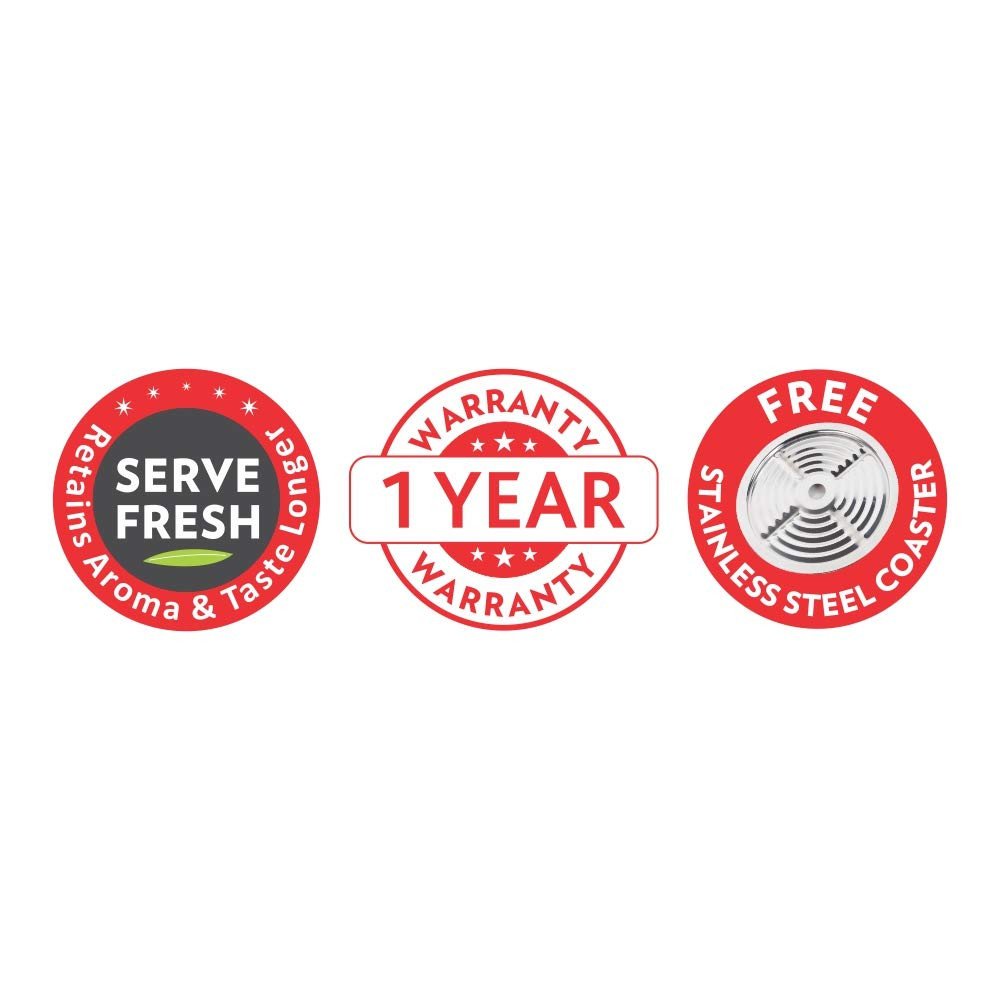 The ServeFresh Insulated Roti Server is designed to ensure freedom from roti sogginess! The double-walled PUF insulation retains the nutritive value of the food. And the dome-shaped lid on the casseroles ensure that the condensed steam trickles down the sides and slides below the coaster, without dropping on the rotis / idlis / theplas, ensuring they stay retain the flavour and aroma, and stay perfectly fresh.