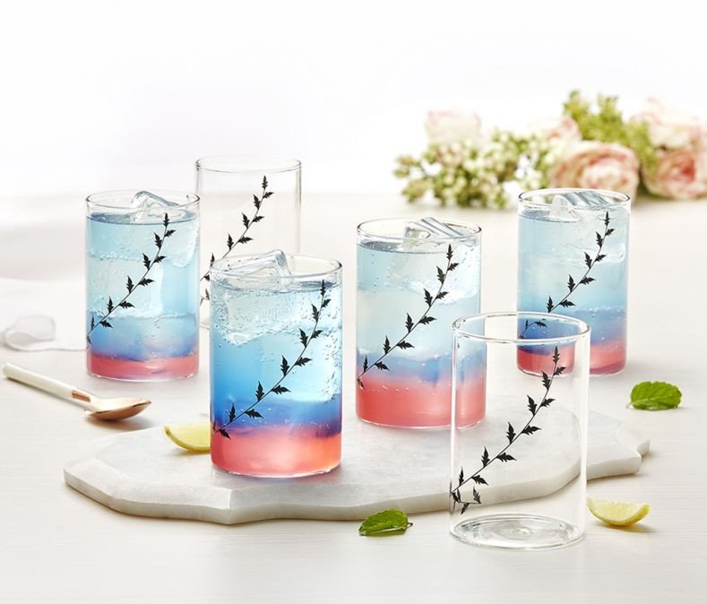 A black creeper pattern adds an earthy element to the thin, elegant glass. Mix and match with a set of the White Krip Glasses for an interesting look when you serve the next round of drinks at home!