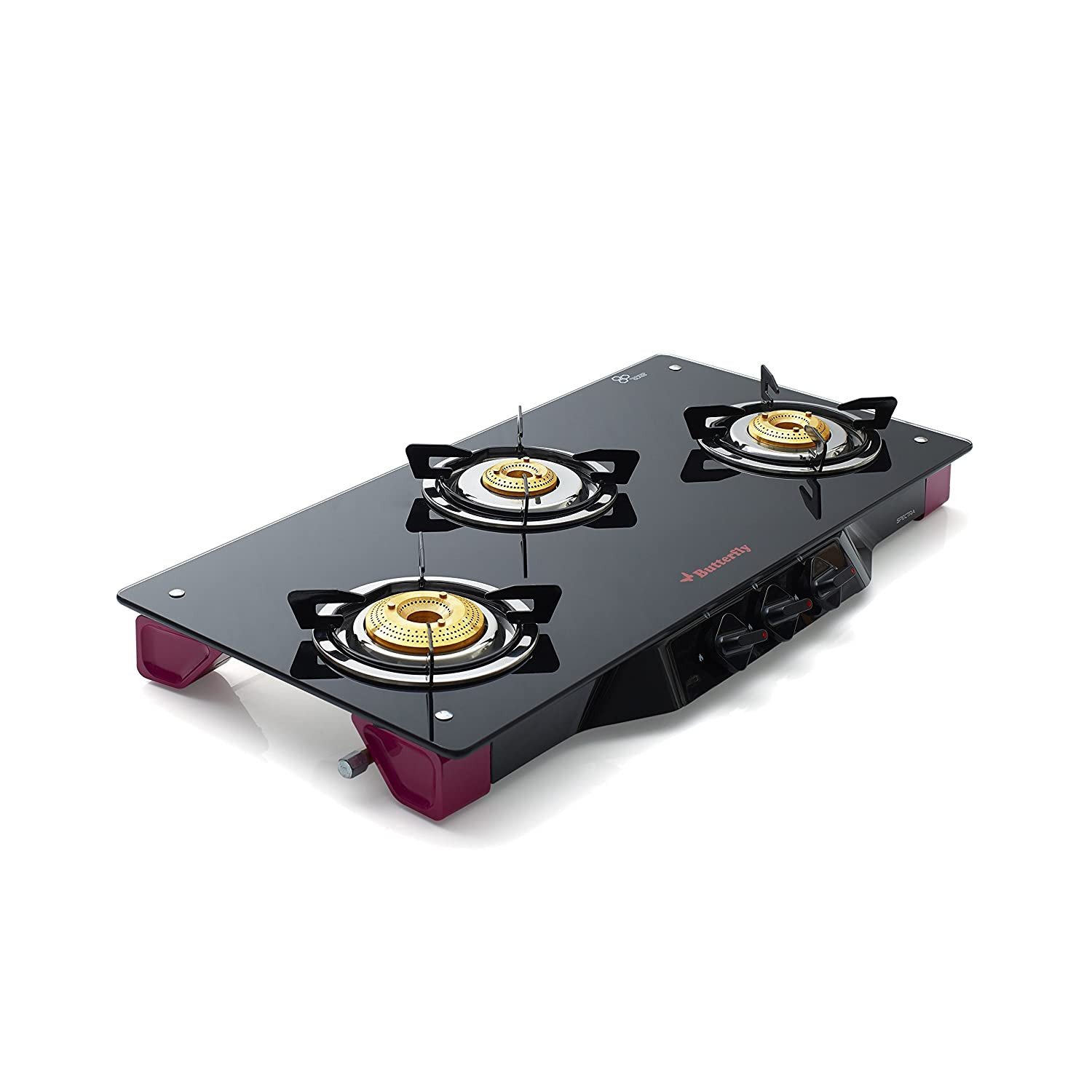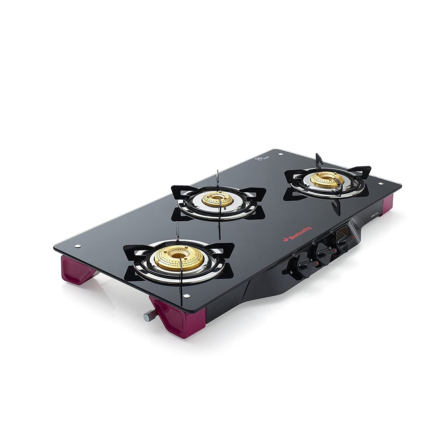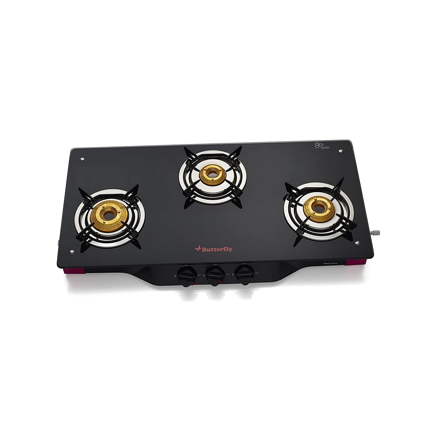 - Gas stove comes with pan support, spill tray, brass burners and manual book