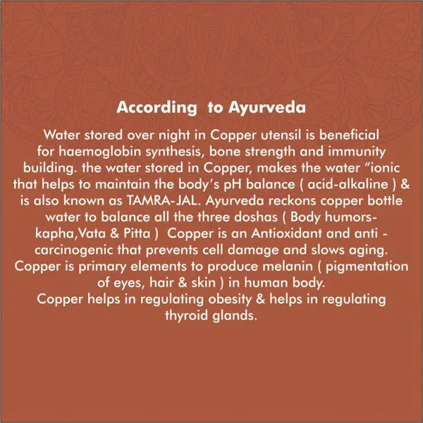 Since its discovery, copper has been coveted by people in many ways because of its wide range of uses and benefits. It holds massive importance in Ayurveda (the oldest medicinal science known to mankind). The prime use of copper is used for drinking water in a copper vessel. Drinking water in a copper vessel has enormous benefits. Copper purifies the water stored in it and imbibes it with qualities that help prevent a host of health issues.