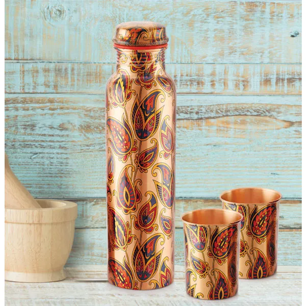 Cello Cop- Pura Diva Floral Copper Bottle Gift Set with Glasses