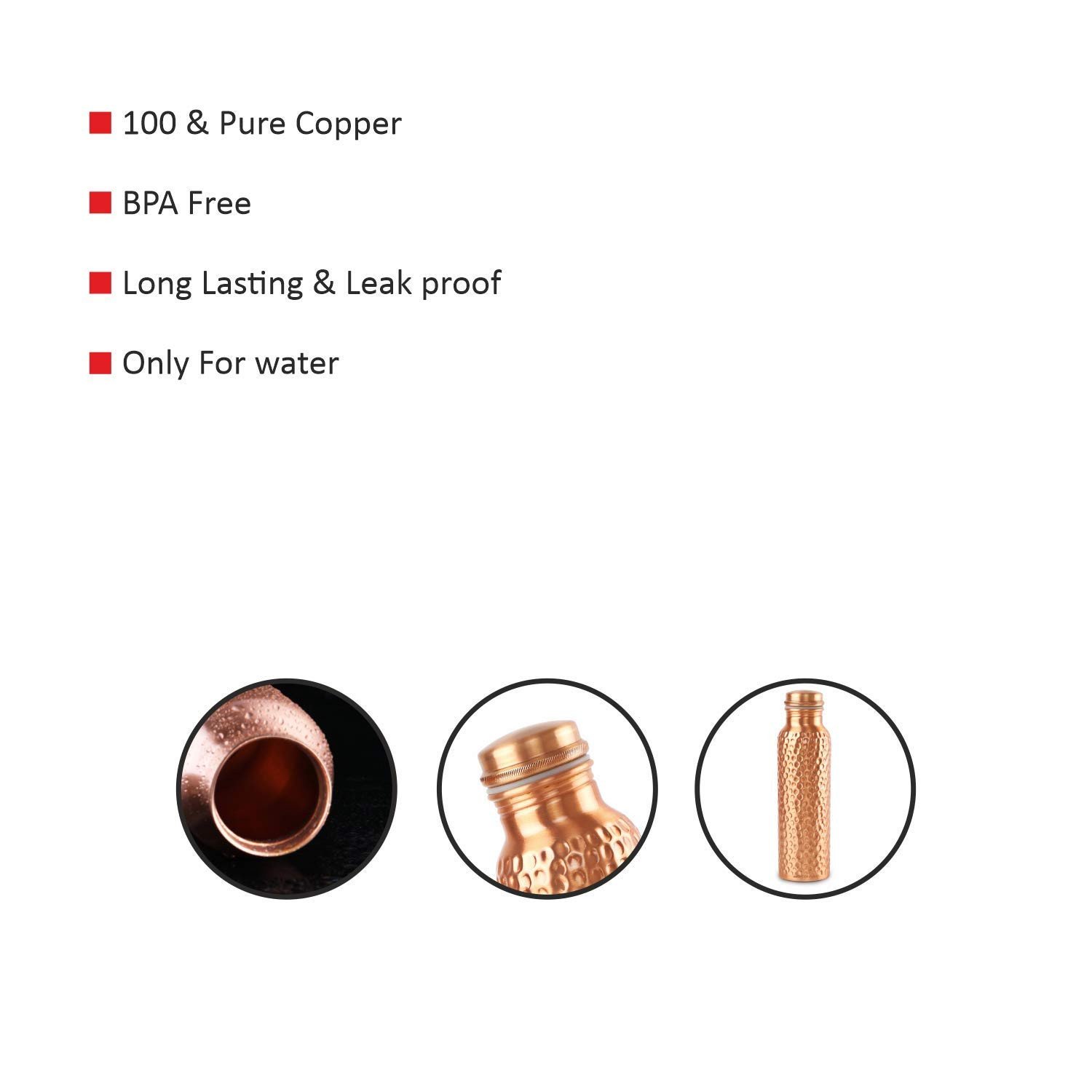 Drinking water from a copper bottle has numerous health benefits such as regulating thyroid and arthiritis conditions, improve general skin and health and also help digestion.