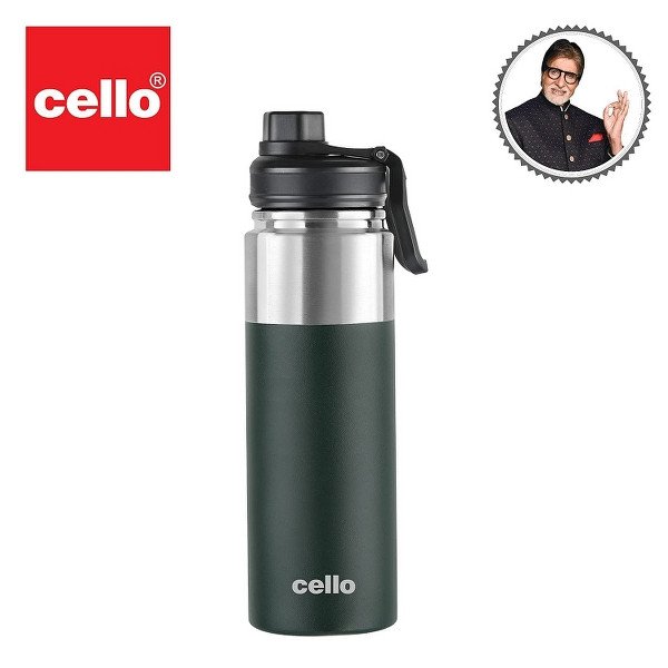 Pre-condition bottle with hot water if used for hot beverages and cold water if used for cold. Cello Duro sprint features a rubber grip opening for easy opening. Material: Stainless Steel, Capacity: 850ml Color: Green