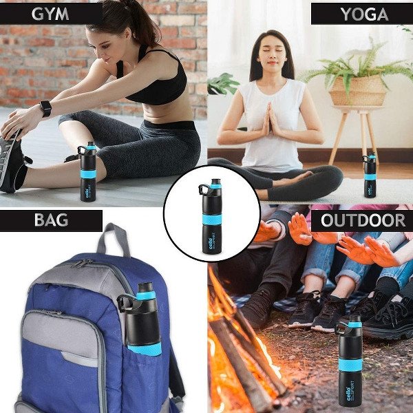 Usage: The bottle is absolutely leakproof and scratch resistant making it the choice for rough-and-tough use, A built-in handle enables you to carry it with ease or attach it to a backpack. It is perfect for hiking, biking, camping, or running.