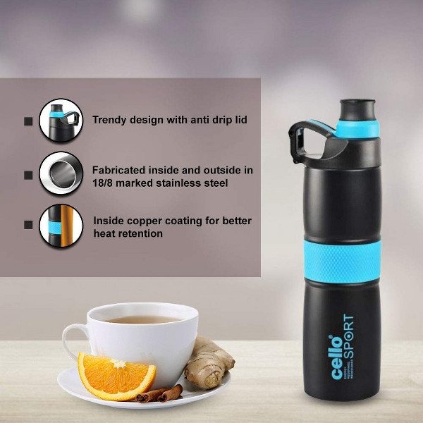 Insulation Type: Cello Force water Flask features double-walled vacuum insulation with an inner copper coating that retains the temperature, keeping beverages hot or cold for a prolonged period of time.