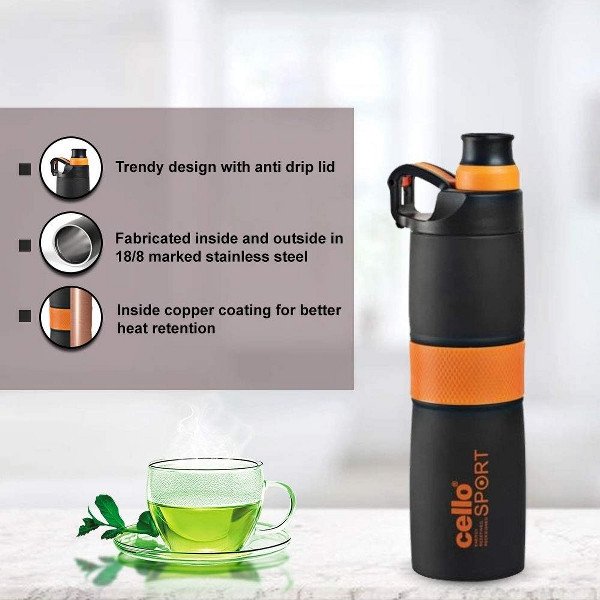 Insulation Type: Cello Force water Flask features double-walled vacuum insulation with an inner copper coating that retains the temperature, keeping beverages hot or cold for a prolonged period of time.