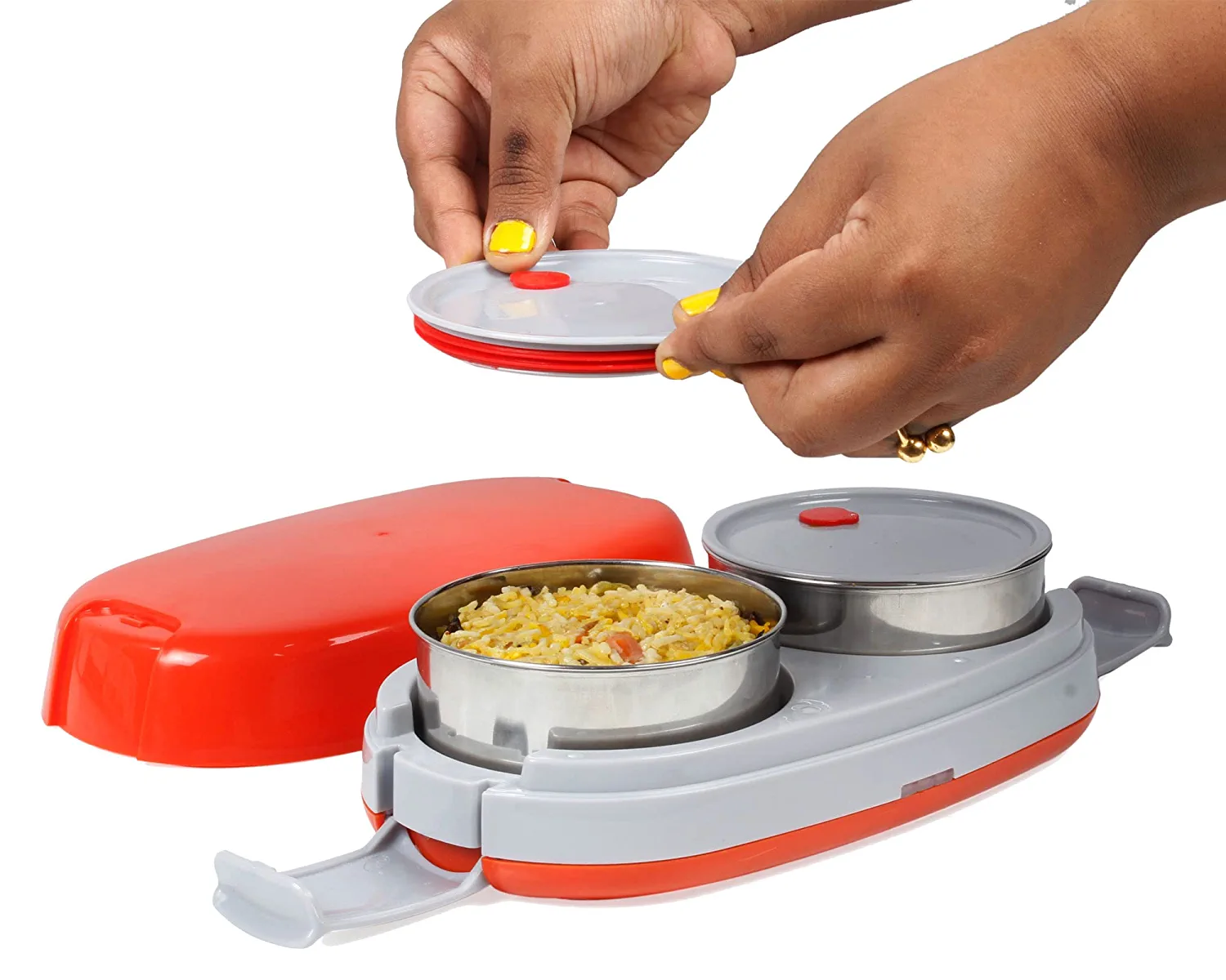 The Cello Hot Bite Electric Lunch Box is the perfect solution for those who want to enjoy warm and fresh home-cooked meals on the go. With two spacious containers, you can easily pack your lunch and take it with you to work, school, or on any outdoor adventure. The electric heating feature ensures that your food is warm and ready to eat in no time, without the need for a microwave or stove. The compact and lightweight design of this lunch box makes it easy to carry, while the high-quality materials used in its construction ensure durability and reliability. Upgrade your lunchtime routine with the Cello Hot Bite Electric Lunch Box, and enjoy hot and delicious meals wherever you go.