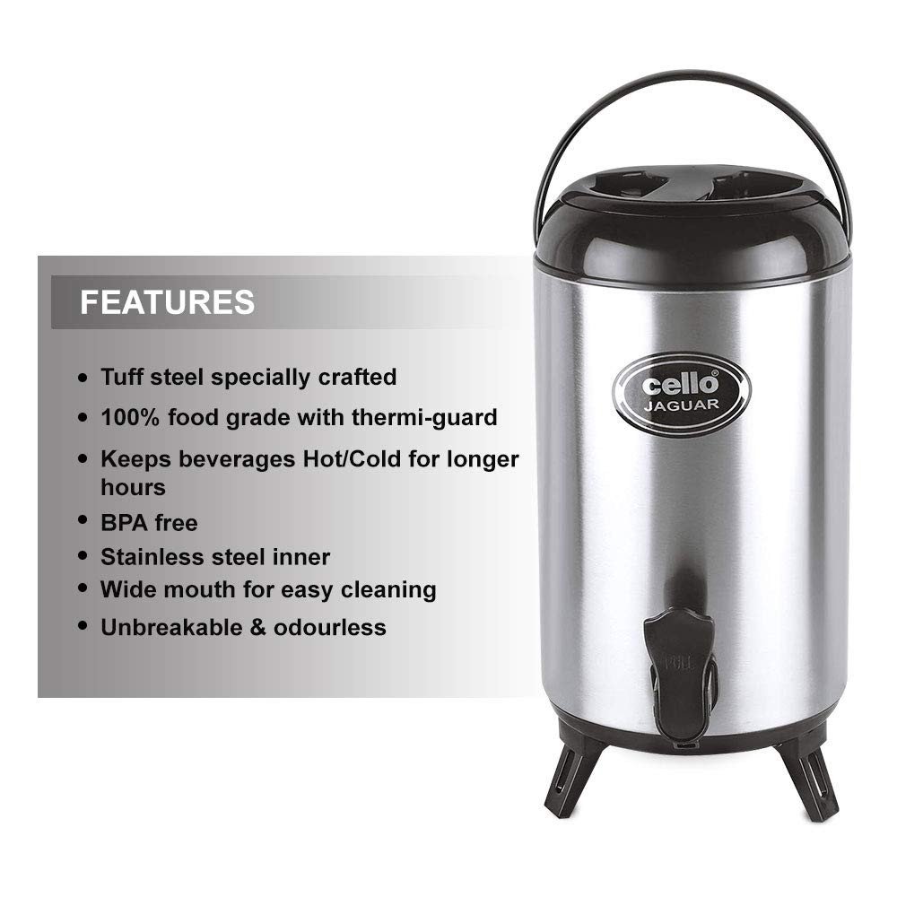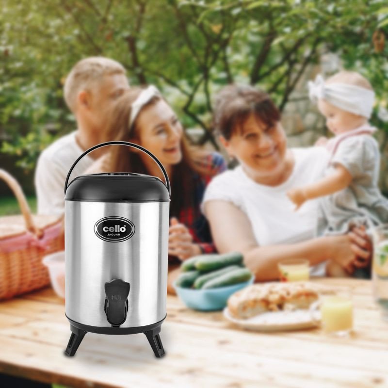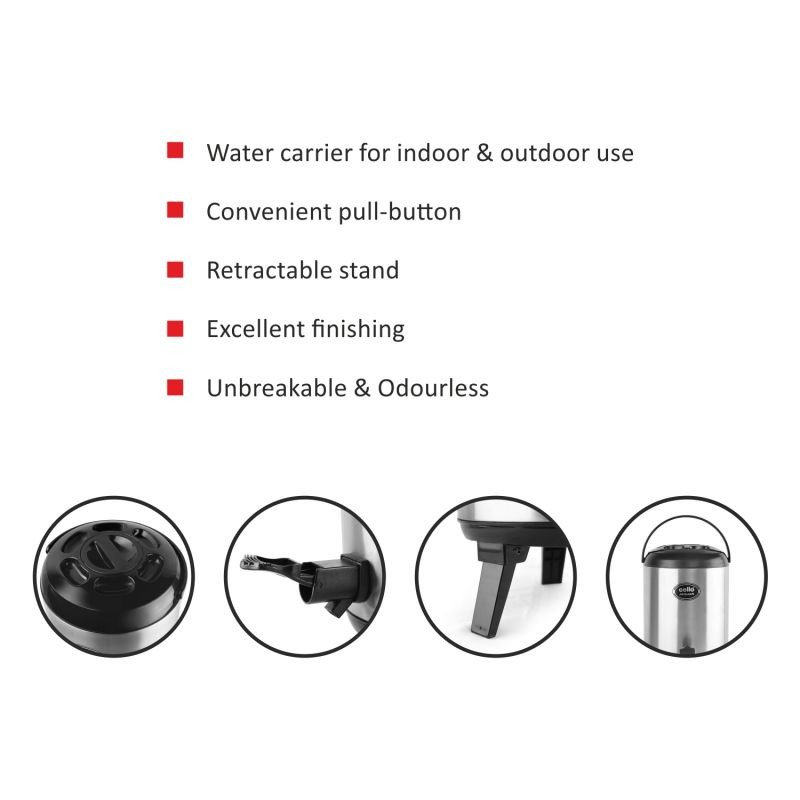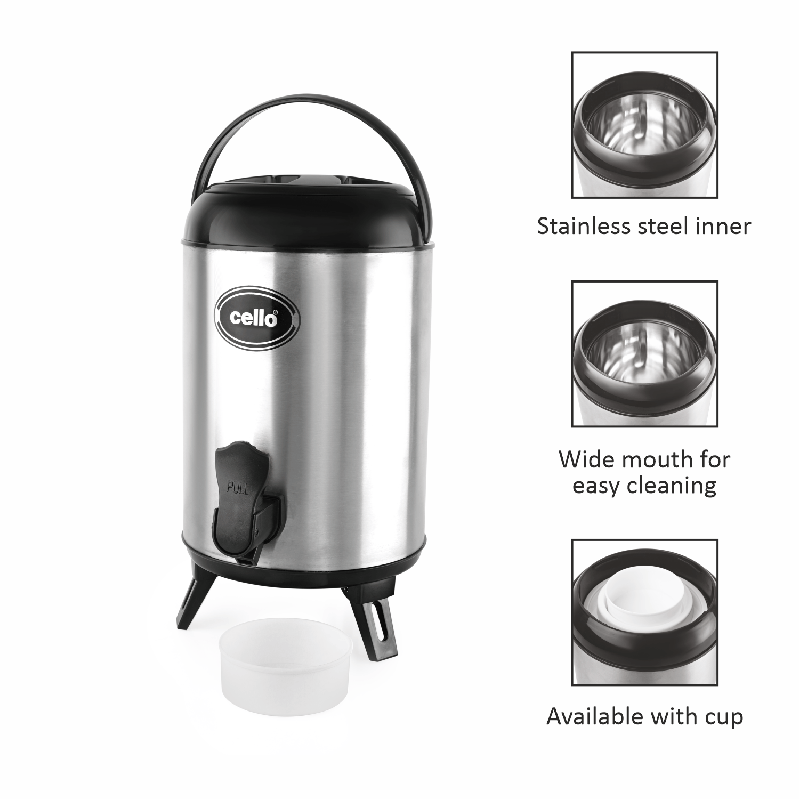 Insulated water jugs for indoor and out door use. These stainless steel water jug are insulated with PU which keeps water cool for many hours. Steel flask with inner and outer body makes it ideal for rough use. Wide mouth for cleaning, Sturdy design ideal for rough use, Strong handle for carrying filled jug, Tap provided for easy and controlled flow. Ideal for picnic or parties.