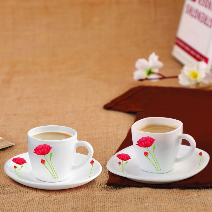 AN ELEGANT WAY TO ENJOY YOUR LIFE: Is there anything more satisfying than that first sip of tea in the morning? Sipping piping hot tea and coffee as soon as possible prepares us for the day. This set of 6 Cups and 6 Saucers will give you a perfect tea time. ELEGANT DESIGN: The design of the set is very classy and elegant. It features a stylish design with exquisite colored glaze, shape, and floral design and patterns. The showpiece of specialty craftsmanship brings elegance and beauty to your home. PERFECT SIZE FOR YOUR NEED: These cups and saucers are not only great for serving tea, but you can also enjoy your favorite Latte Art, cappuccino, caffe latte, espresso, coffee, hot chocolate, and other beverages. STRONG AND STURDY: Pro-grade porcelain & safe for dishwasher, microwave, oven, and freezer these cups are made of durable opalware material, a type of premium lead-free, chip-resistant, and more sturdy than stoneware. A LUXURIOUS GIFT: These amazing cup and saucer set is packaged in a well-wrapped box, a perfect gift for your friends and family on Diwali, Housewarming, Wedding party, Mothers' Day, Fathers' Day, Christmas and New Year's Day. Queen Cup and Saucer Set have industry-favorite traditional contours, ideal for various dining environments, from casual to the white tablecloth. The sleek cups are sure to create a dining experience your guests won't soon forget. These cups made of durable porcelain, they are clean up well in the dishwasher or by hand, and no residue left, no need to worry about stains. The luster still looks like new after a long time of use. They have a pretty look that actually brings elegance and beauty to your home.