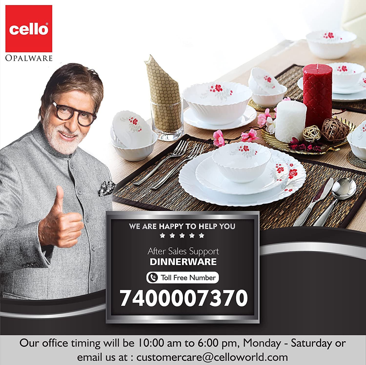 Pack Content: 6 Dinner Plates, 6 Quarter Plates, 6 Veg Bowls , 6 Soup Bowls, 2 Serving Bowl , 2 Serving Bowls Plastic Lids 1 Rice Plate .6 Soup Spoons and 2 Salt Pepper Pot