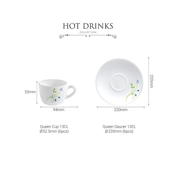 Upgrade your table setting with the Cello Opalware Queen Cup and Saucer Set and enjoy your hot beverages in style.