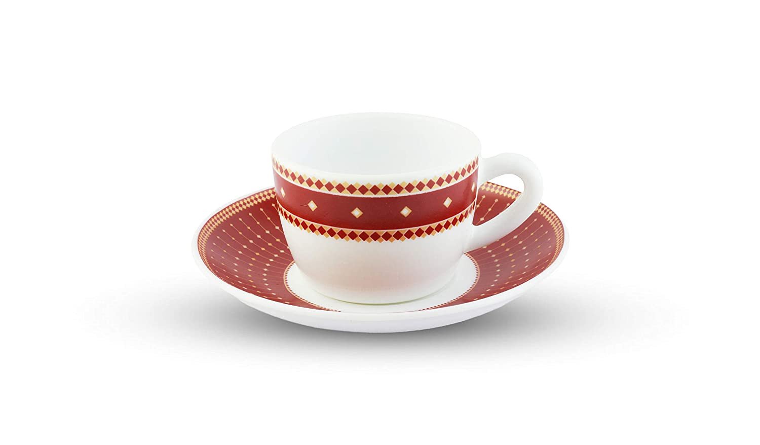 CELLO OPALWARE Zarah Platini Collection Glass Cup and Saucer Set (Red Ruby), 12-Pieces