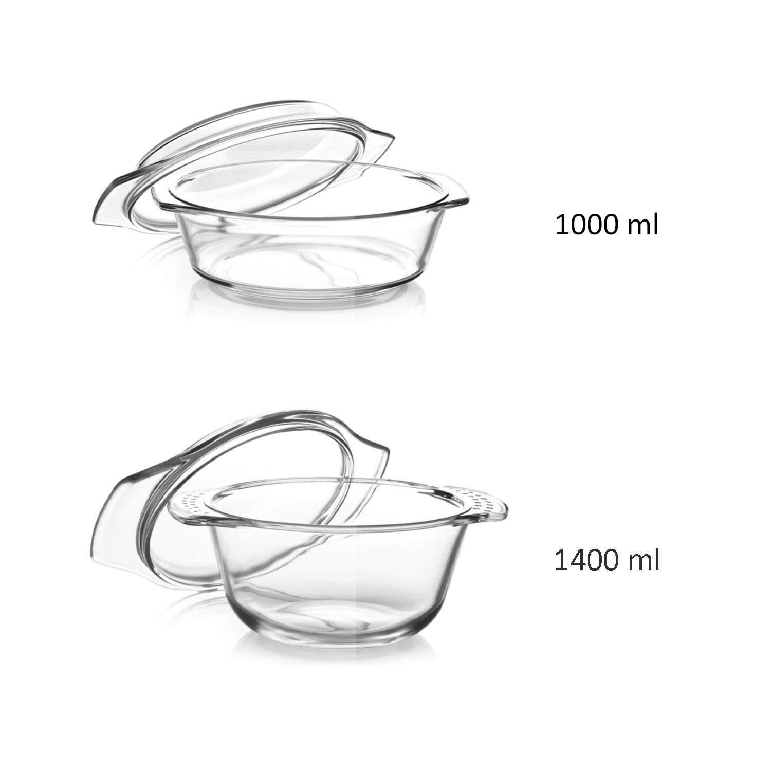 Cello Prego Angelica Round Glass Casserole with Lid, 1 Litre/20.7cm, Clear