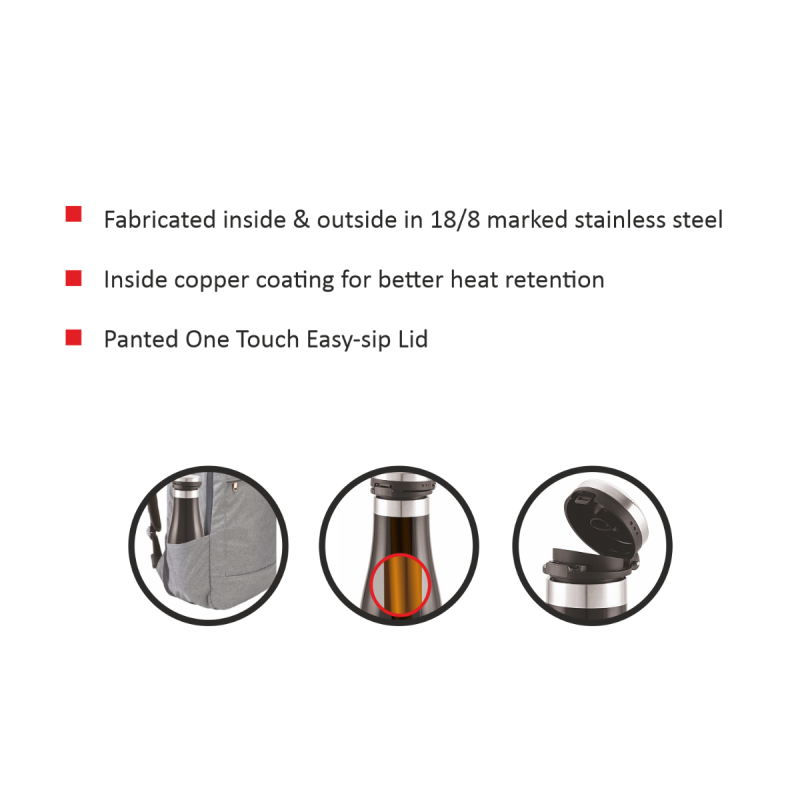 • Perfect for hot & cold water, beverages, non-acidic juices, smoothies etc.