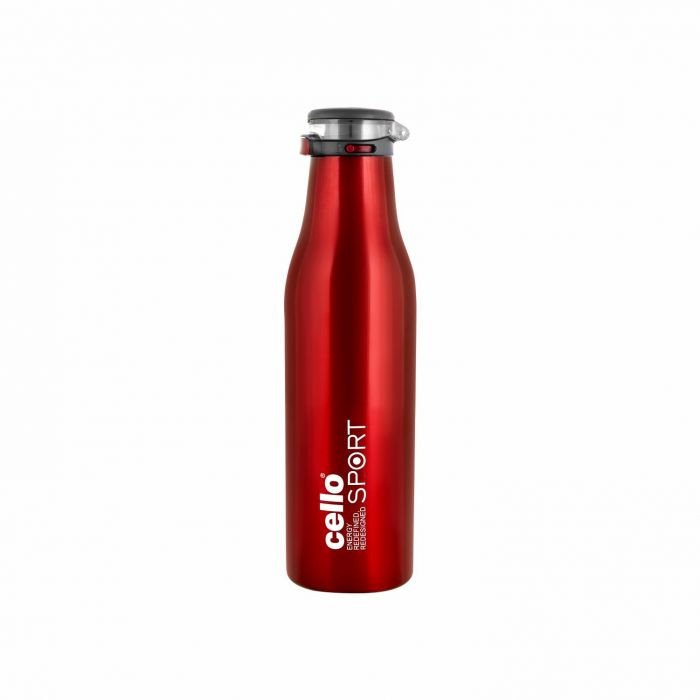 Cello Stainless Steel Double Walled Water Bottle, Hot and Cold (Sprite) 600ml