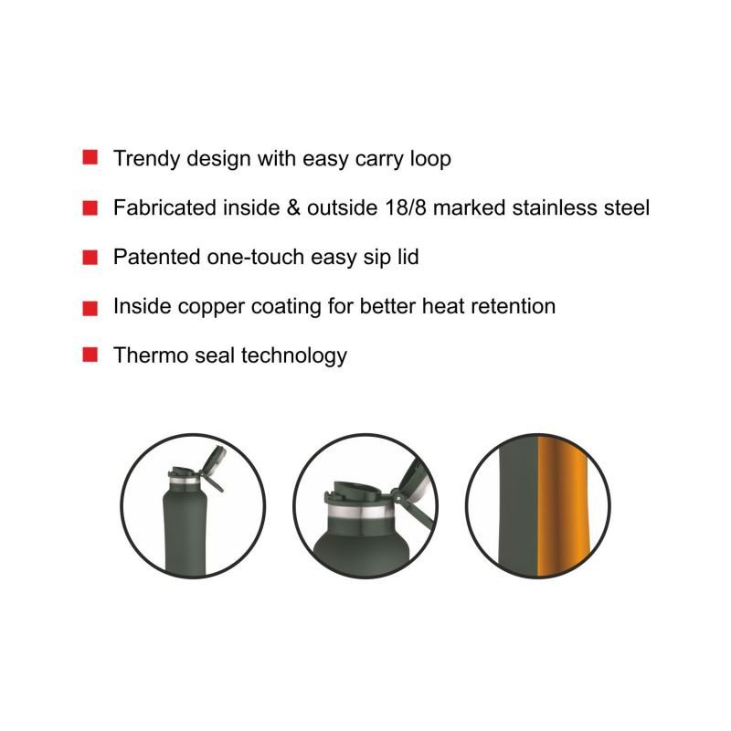 Cello Stainless Steel Double Walled Water Bottle, Hot and Cold (One Touch) 750ml