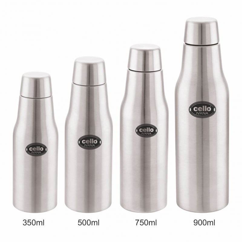 Cello Stainless Steel Double Walled Water Bottle, Hot and Cold (Ivana) 350ml