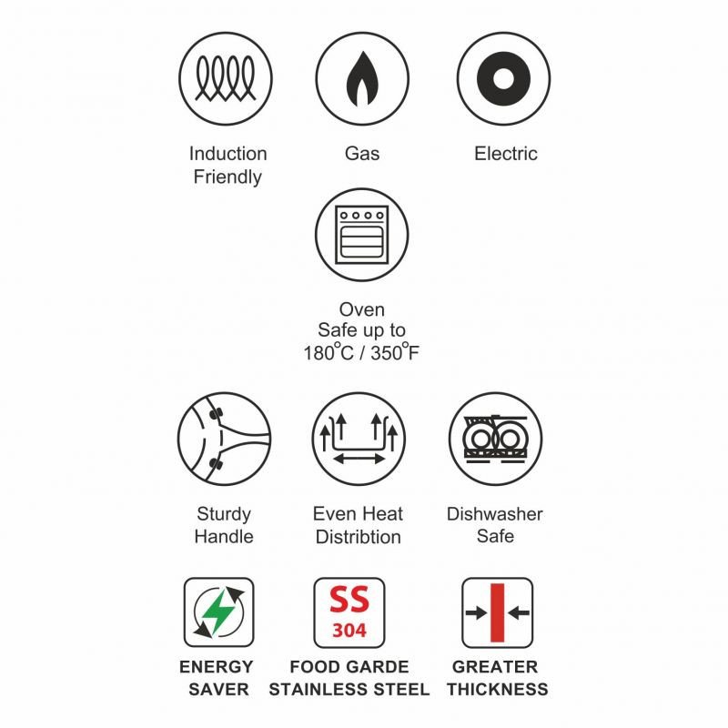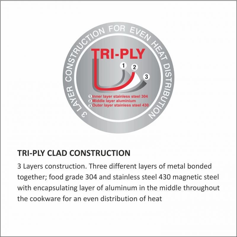 • 3 Ply construction consists of durable stainless-steel encapsulating layes of aluminium core for allow fast & even heating