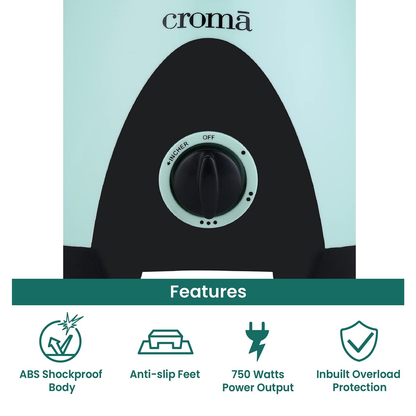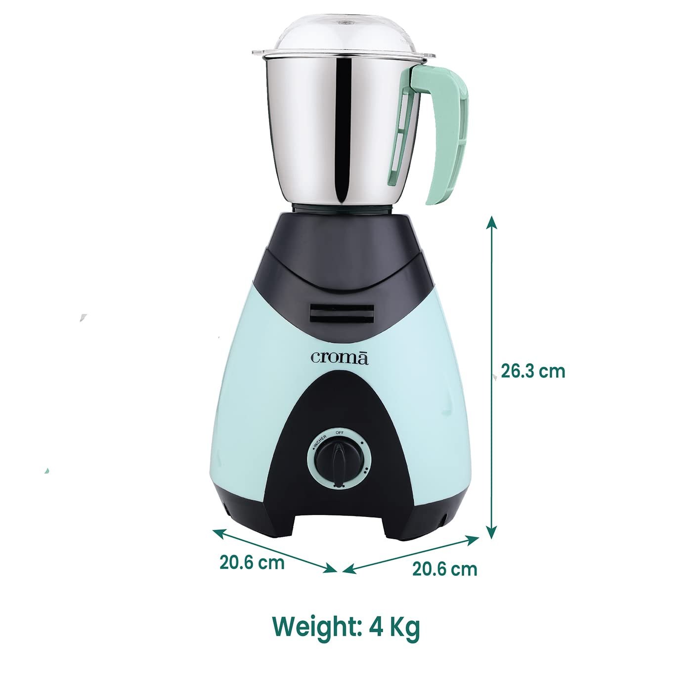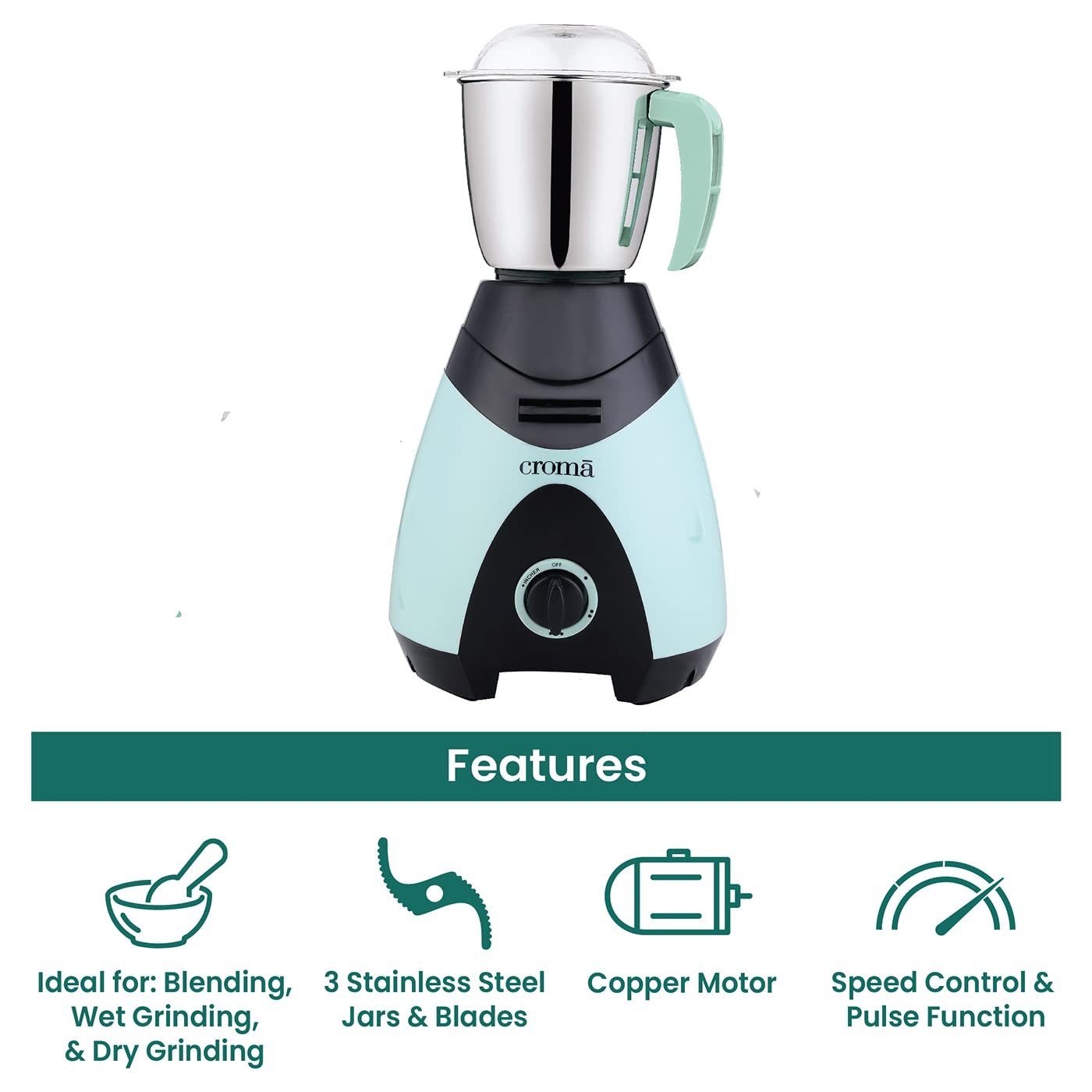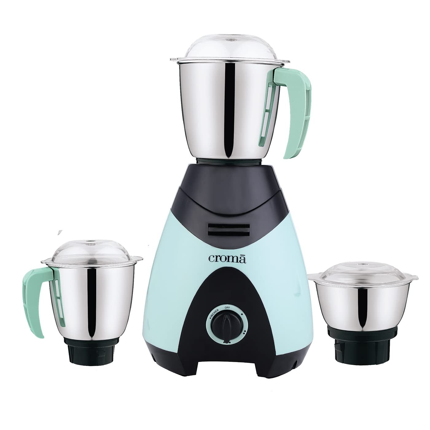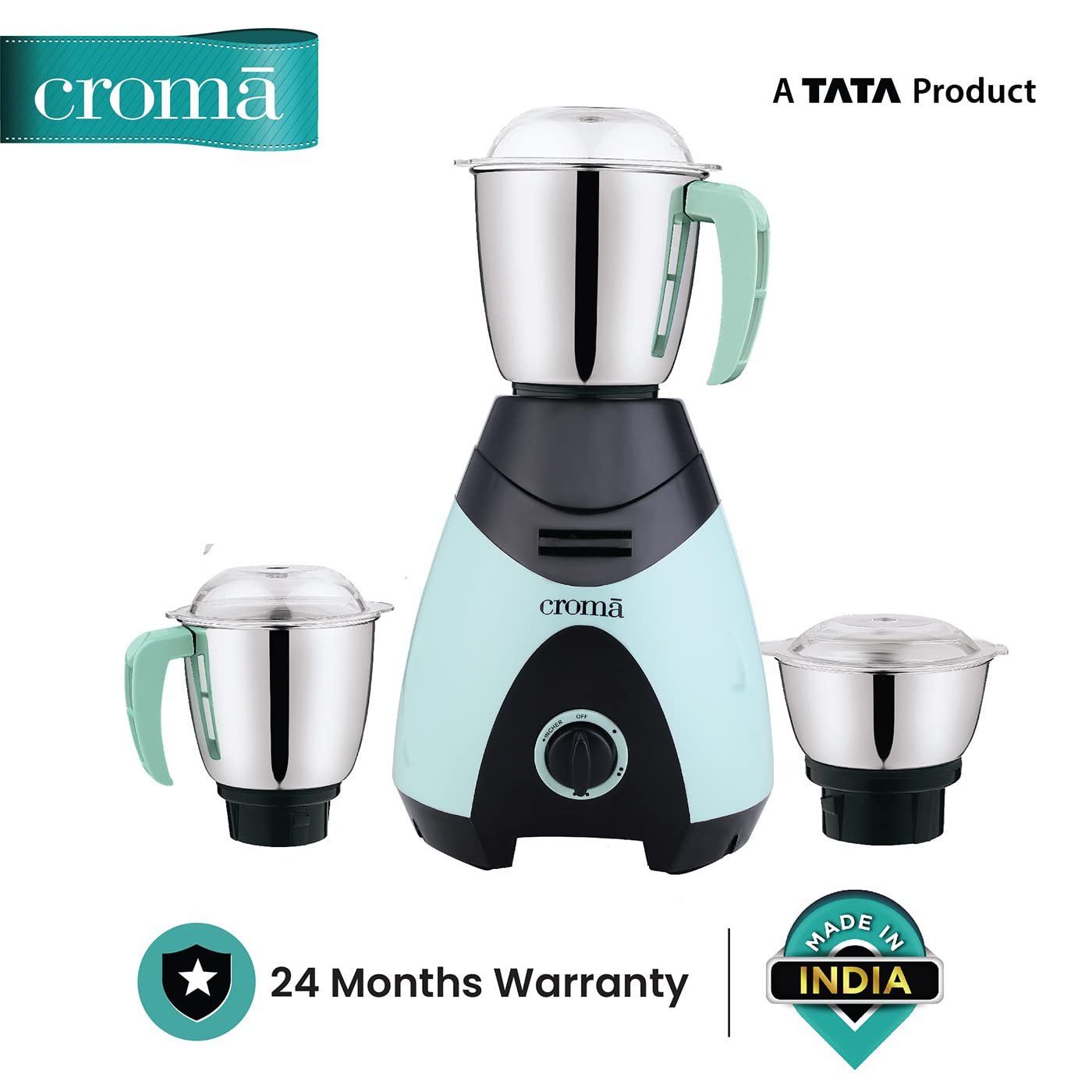Croma 750 Watt Mixer Grinder 3 Stainless Steel Leak proof Jars Powerful Copper Motor with 3 Speed Control, 2 Years Warranty