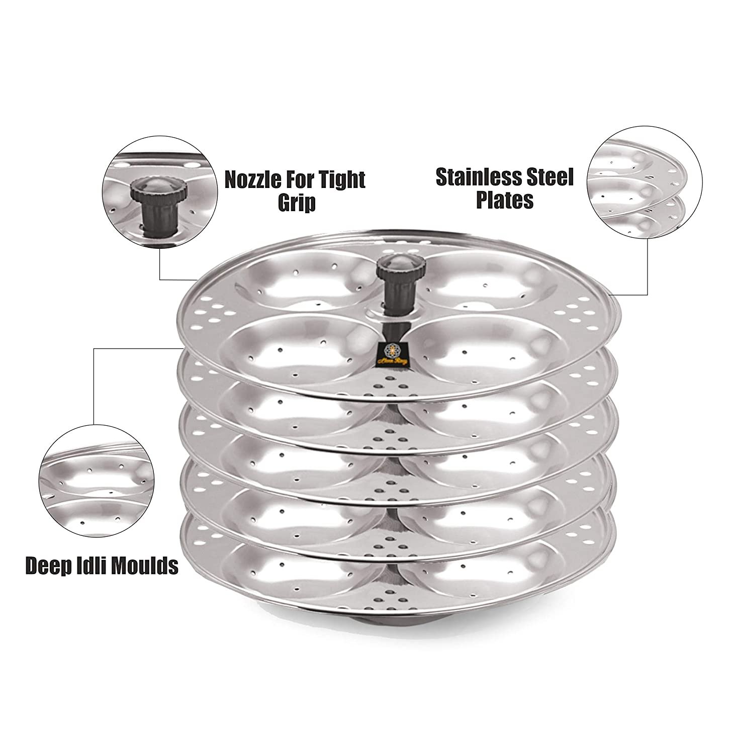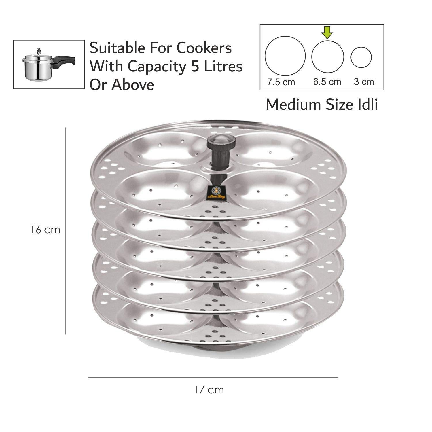 • Package Contents: 1 x Stainless Steel 5 Plate Medium Idli Stand
