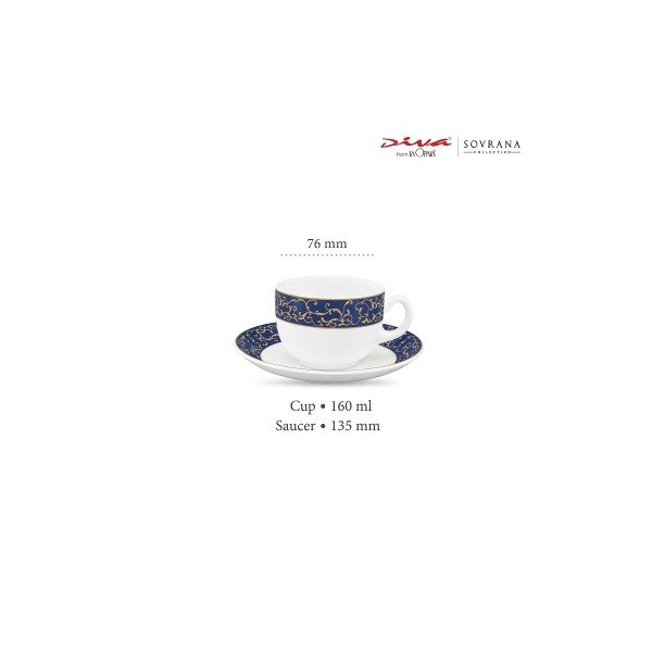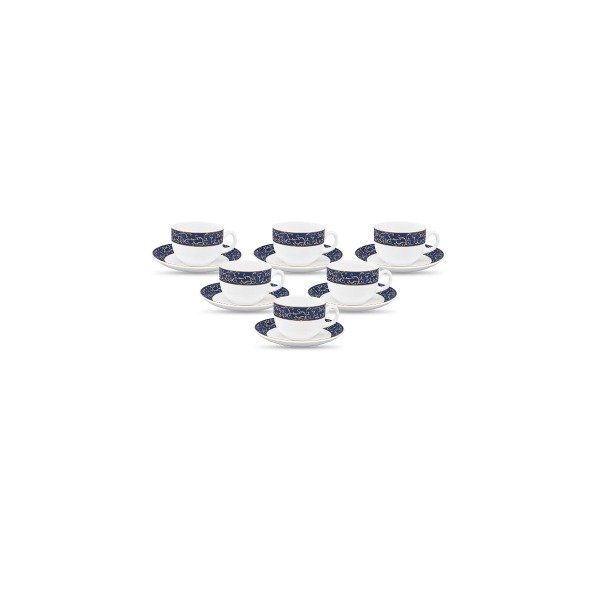 Diva from La Opala Anassa Blue Sovrana Collection Opalware Cup And Saucer Set, 6 Pieces, White