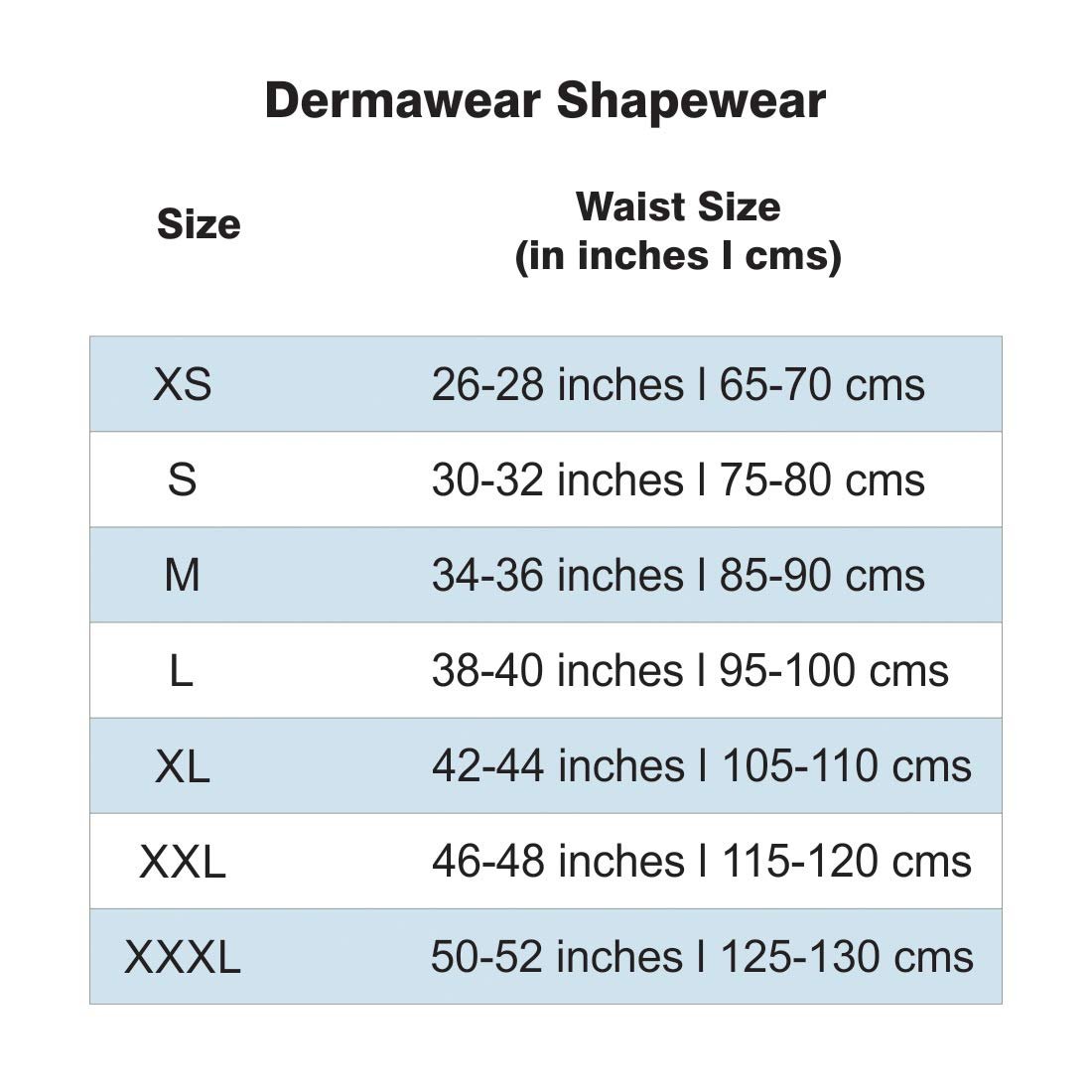 Dermawear’s Mini Corset is a body shaper for women supporting weak abdomen muscles which quickly reduces the waist measurement. The external pressure provided by the Corset, improves the functioning of lymph and venous circulation thus reducing the accumulation of excess fat. This helps gain strength and improve muscle tone thereby functioning as a tummy shaper as well. It also provides firm compression to weak abdomen muscles shaping and toning your abdomen. To know the exact size for you kindly measure your size from the naval area with a standard measuring tape and take the closest size available (Do not buy a smaller size as it won’t fit you). Shapewear is a tight fitting garment, hence it is essential that you buy the correct size. Do not buy as per your shirt/trouser size or by assuming your size as sizes may be different in different brands.