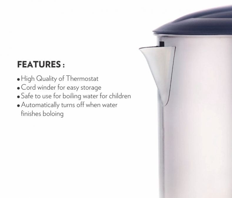 - Automatically turns off when water finishes boiling