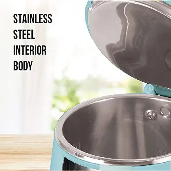 This kettle has been precisely designed for the user's convenience. It features a wide mouth that makes filling, pouring, and cleaning easy tasks. The cover ensures the beverage stays warm and protected from external pollutants.