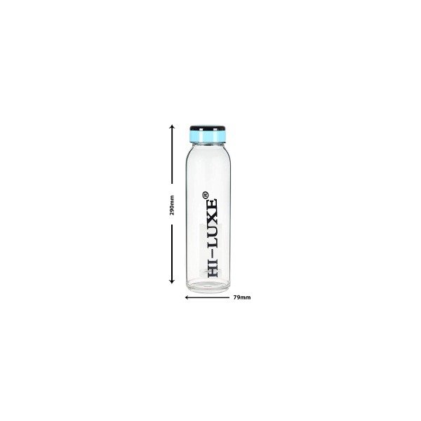 HI-Luxe Borosilicate Glass Water Bottle (Blue, 1000Ml)
