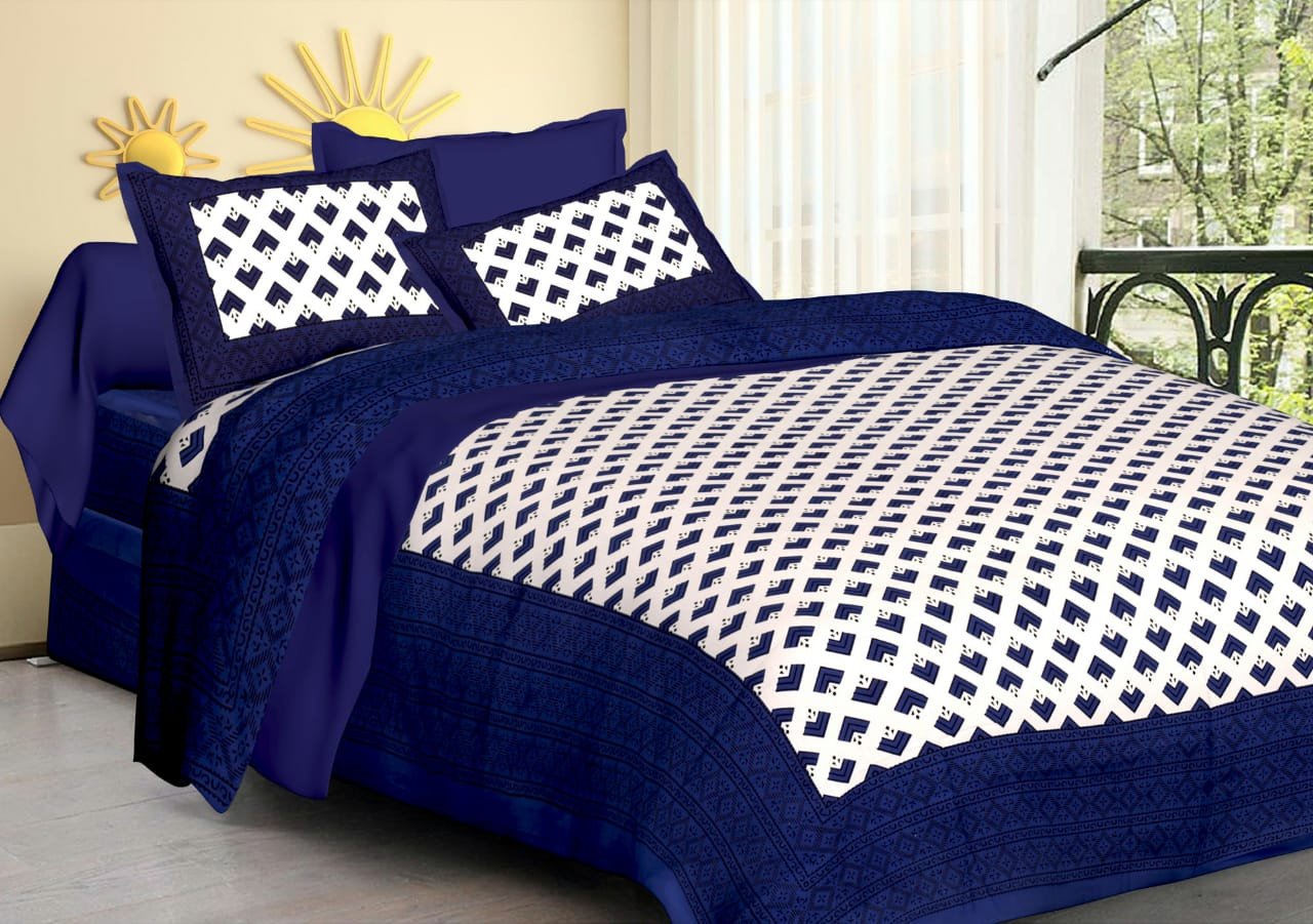 Sanganeri Mart Jaipuri Prints Cotton Bed sheet For Double Bed With Two Pillow Cover Size 85 x 95 Inch