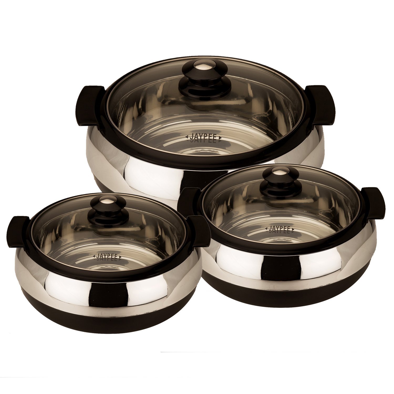 Chrome plated panel makes this set of three casseroles beautiful & enhances your serving experience. It’s also good for gifting purpose.