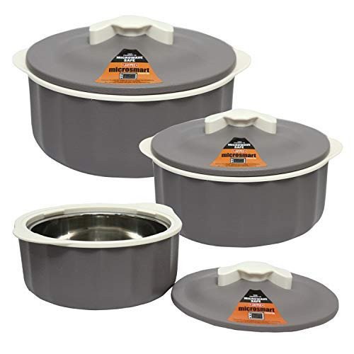 • Microsmart is microwave safe casserole with stainless steel inner, it can be used for reheating all foods.