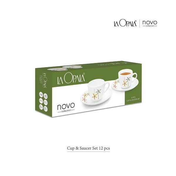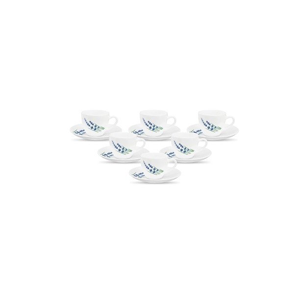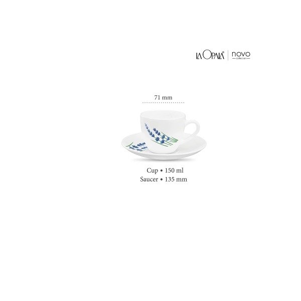 Enjoy your tea or coffee with La Opala Novo Collection Opal Glass Cup & Saucer Set Lily 12 pcs in elegant English Lavender and White design. This opal glass cup and saucer set is a perfect blend of style and durability. The high-quality opal glass material is thermal shock-resistant, microwave-safe, and dishwasher-safe, making it a perfect addition to your daily use.