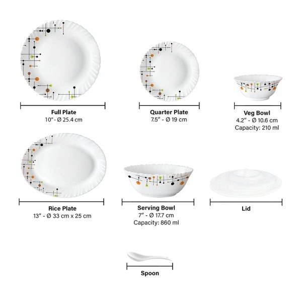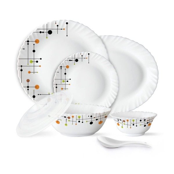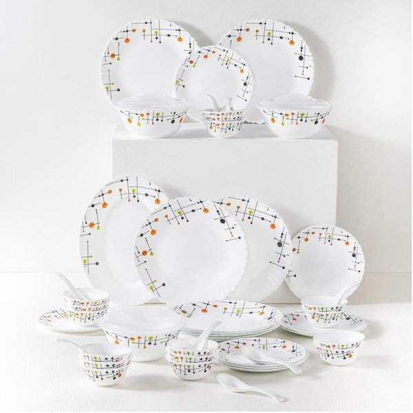 • Whether you're hosting a formal dinner party or enjoying a casual meal with your family, the Larah by Borosil Matrix Silk Series Opalware 47 Pieces Dinner Set is a perfect choice. Its classic design and durable construction make it a timeless addition to any dining collection. Order yours today and elevate your dining experience to the next level!