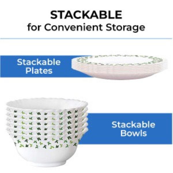 The Larah by BOROSIL Sage 47 Pcs Opalware Dinner Set is ideal for everyday use as well as special occasions. Impress your guests with the elegant design and exquisite craftsmanship of this dinner set. Perfect for gifting to newlyweds, housewarming parties, or simply for upgrading your own dining experience.