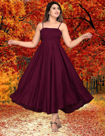 100% Rayon !! Western Wear Flared dresses Floor Length (50 Inches); 1 Readymade dresses Sleeveless With Square Neck !! Casual, Festive & Party Wear; Highlight With Elasticated Suitable Perfect Gift For Christmas, New Year, Valentines Day, Birthday, Wedding, Anniversary, Party Wear, Home dresses for women latest design II one-piece dress for women II anarkali dress II maternity dress II dresses for women western