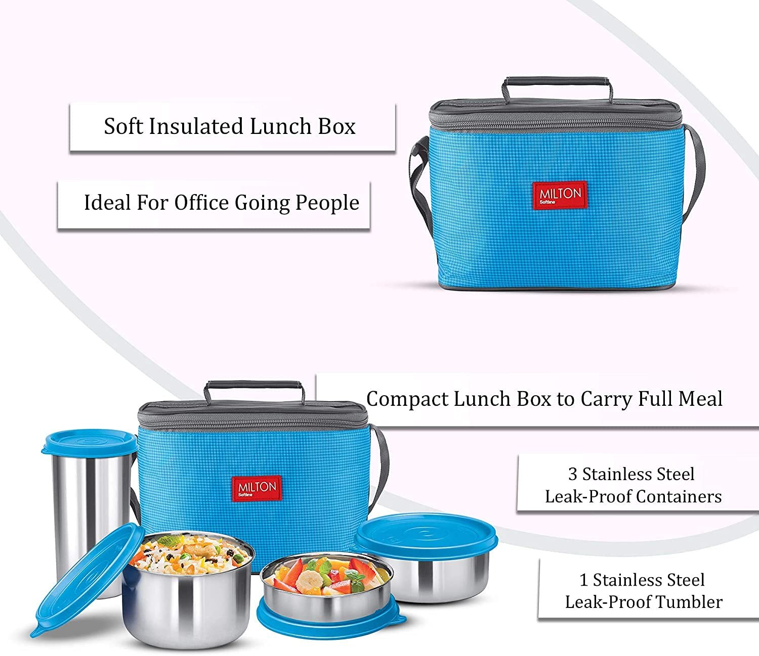 - Soft insulated Compact lunch box to carry full meal. Ideal for office going people