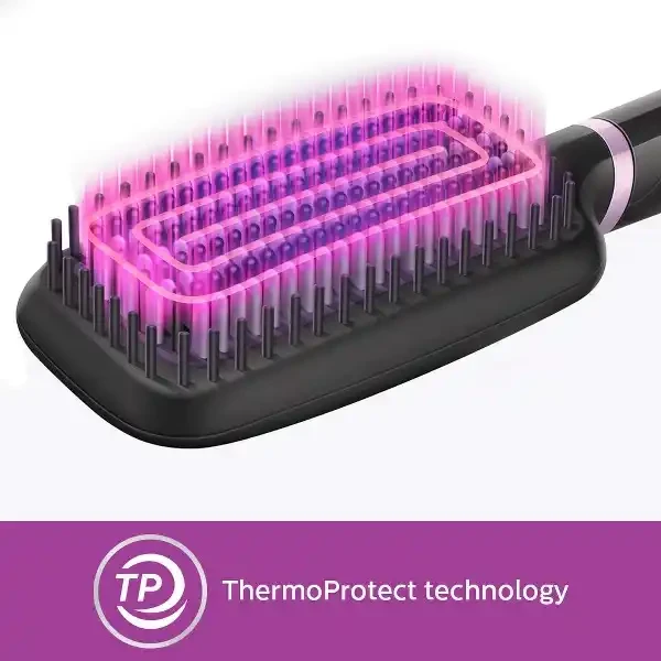 ThermoProtect technology maintains constant temperature across the brush to prevent overheating for protected, healthy-looking hair