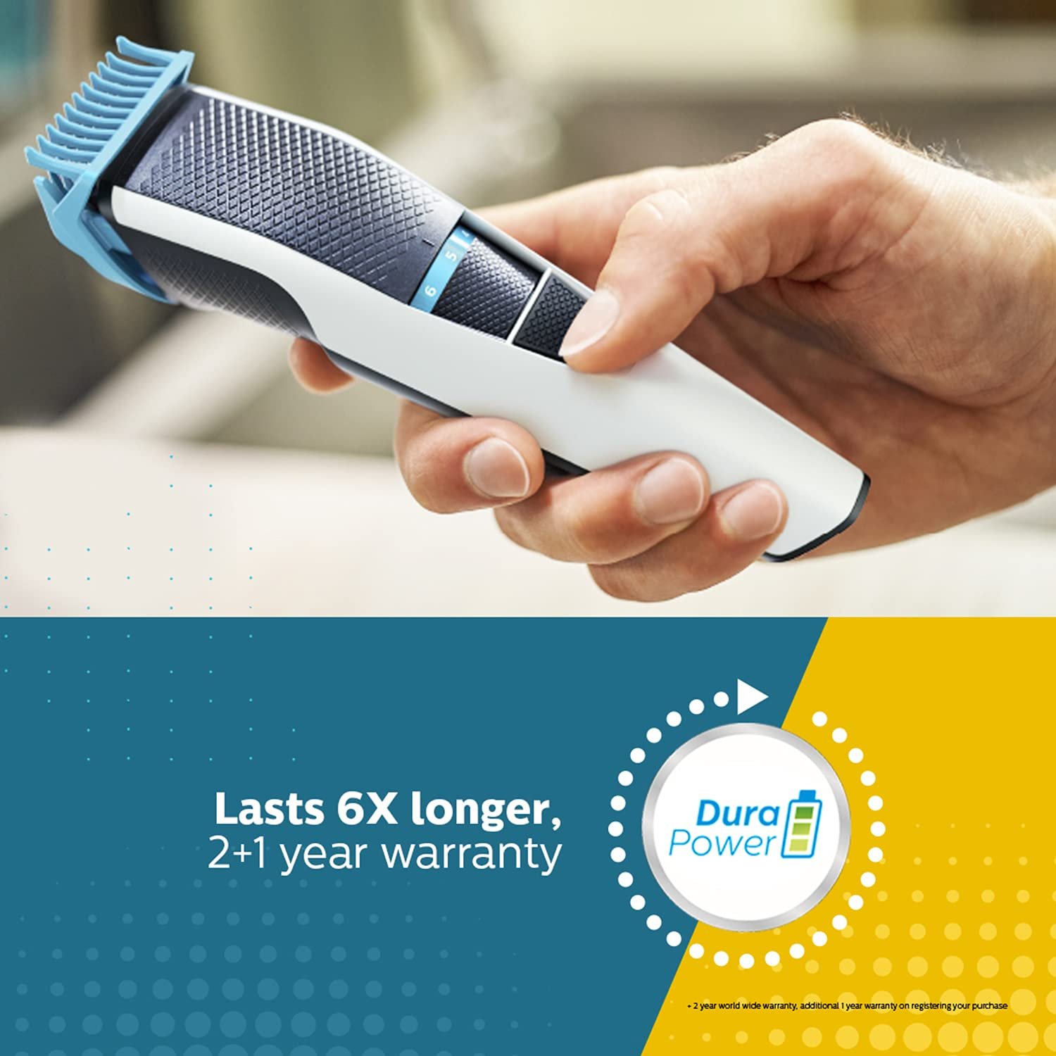 Philips BT3203/15 cordless rechargeable Beard Trimmer - 10 length settings; 45 min run time, White
