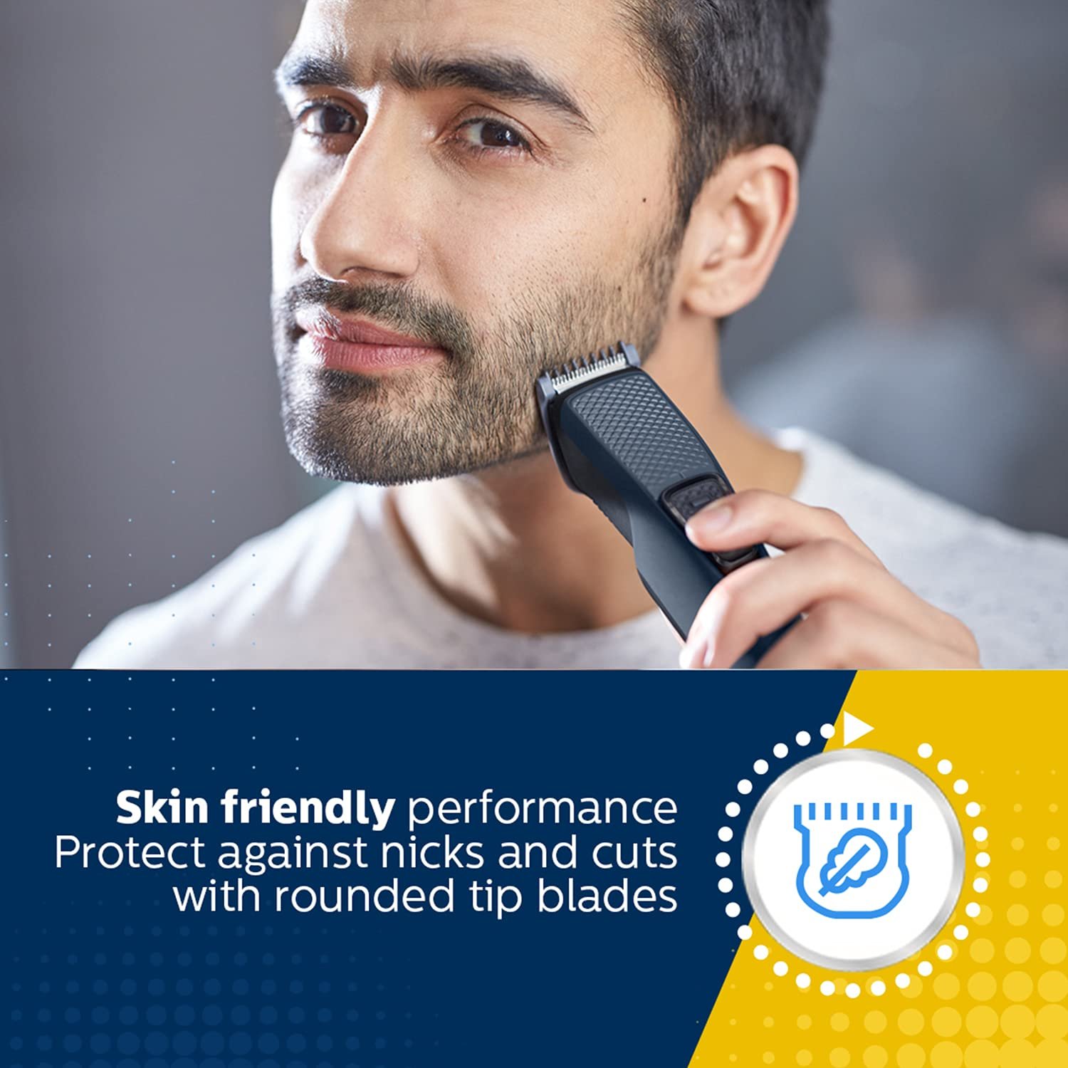 Trims beard, guards skin Protects against nicks and cuts The DuraPower technology ensures a long-lasting battery performance, while the self-sharpening stainless steel blades trim consistently as on day 1. This trimmer can also be charged with a micro-USB cable and runs for up to 30 minutes. Trimming performance Stainless Steel Blades for long-lasting sharpness Choose beard lenghts of 1-5-7mm or the zero trim look Skin-friendly blades for smooth skin Easy to use DuraPower technology for a longer lasting battery life Up to 30 minutes of cordless use after 8 hours charging USB charging for convenient use Light on the device indicates when battery is charging Travel lock prevents trimmer from accidentally starting Detachable head for easy cleaning Ergonomic design for easier handling Built to last 2 year guarantee, worldwide voltage, no oil needed