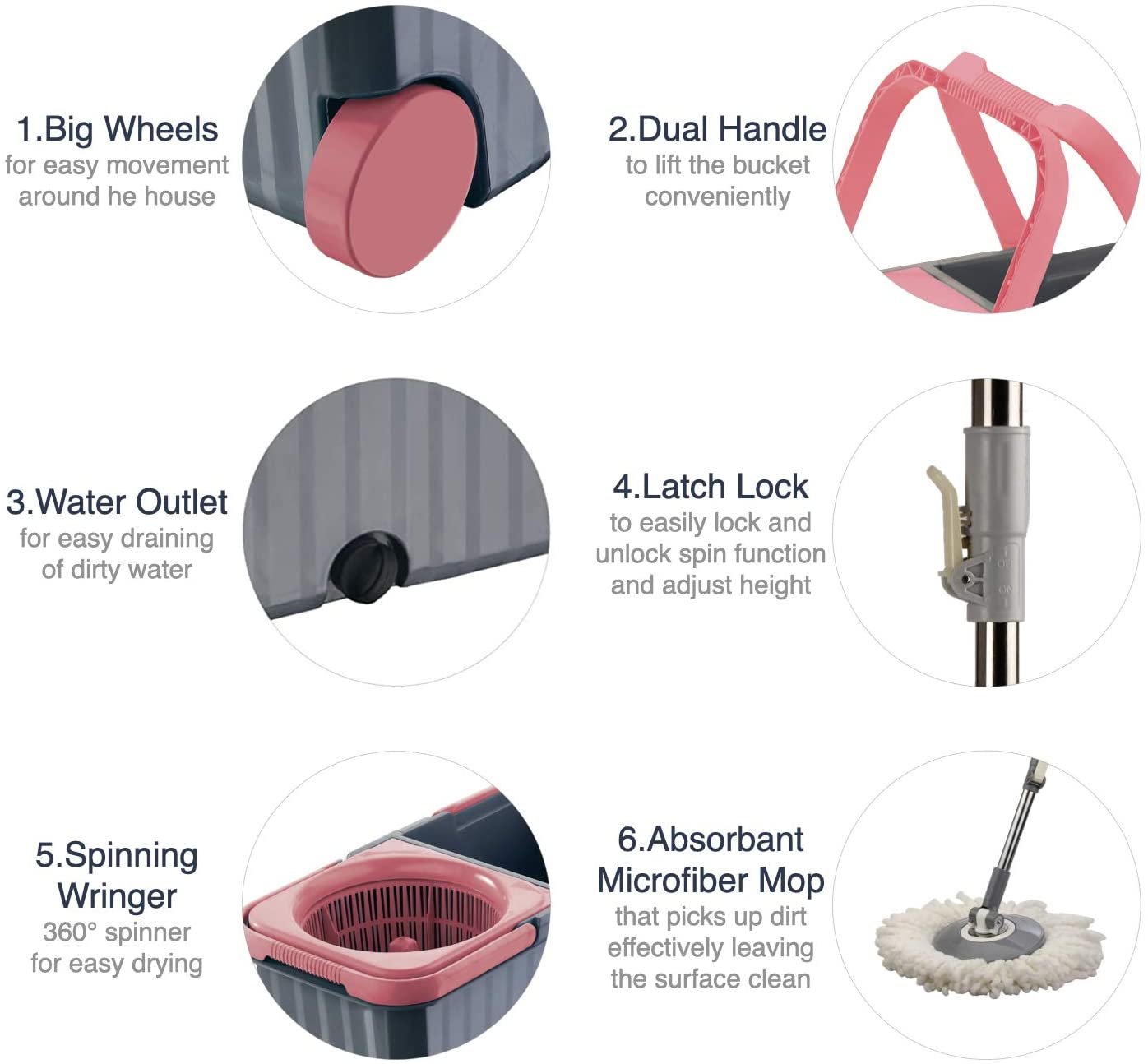 - Spin Mop Helps Carrying the Bucket from One Place to Another Comfortably.