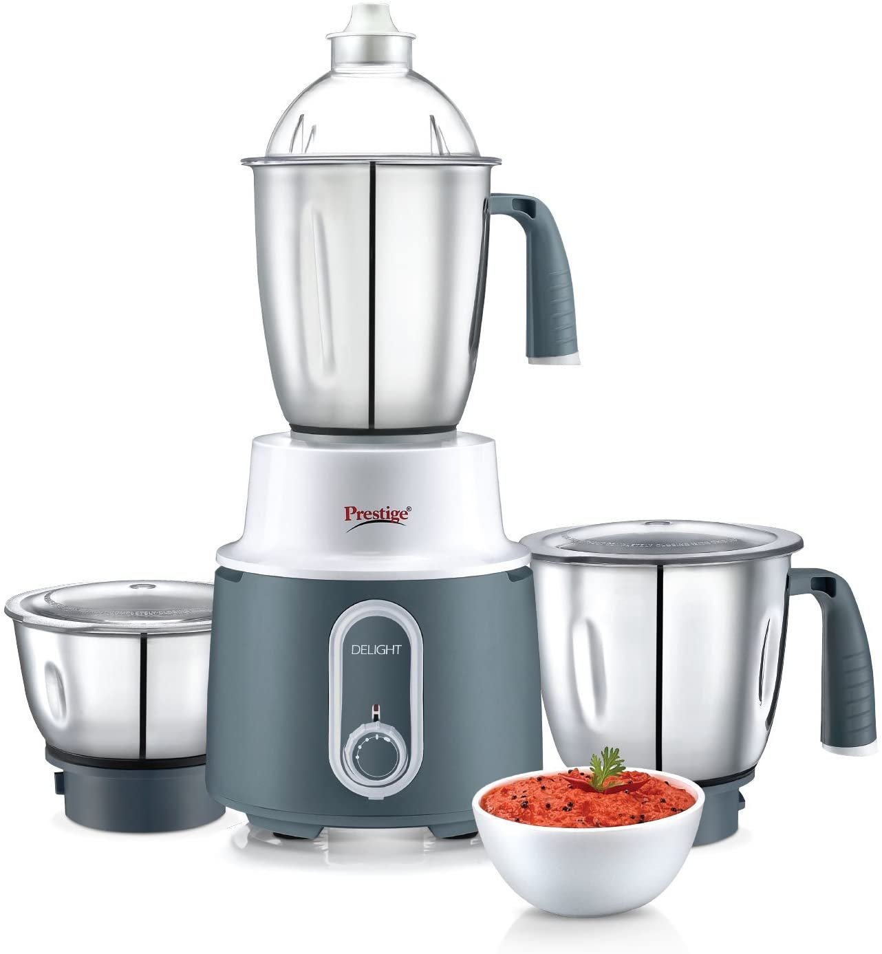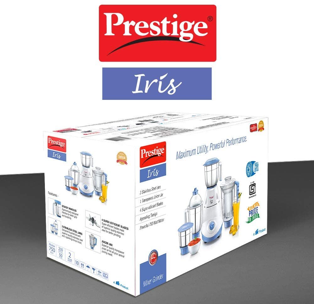 Experience the power-packed performance in a unique and advanced design with the all new prestige delight mixer grinder. Equipped with a powerful 750 watts motor and 3 super-efficient blades that caters to all your grinding needs. With its superior-grade plastic body you can be sure of a long-lasting grinding companion for decades. Contents included : One mixer grinder base unit. Ss wet jar 1500 ml with blade. Ss dry jar 1000 ml with blade. Ss chutney jar 300 ml with blade. Spatula.
