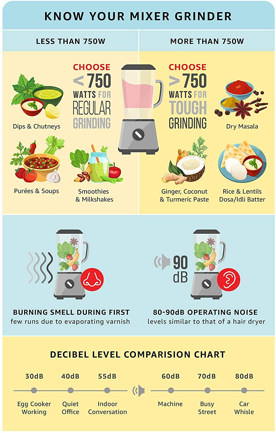 • Colorful, Stylish and Powerful, ISI certified mixer grinder, Strong 750 watts motor