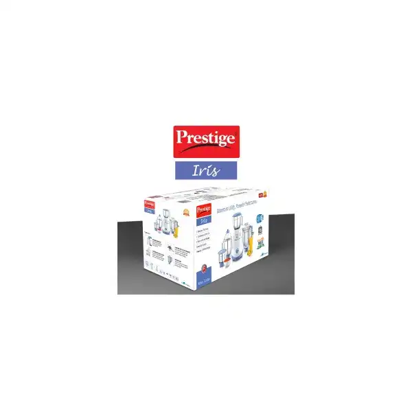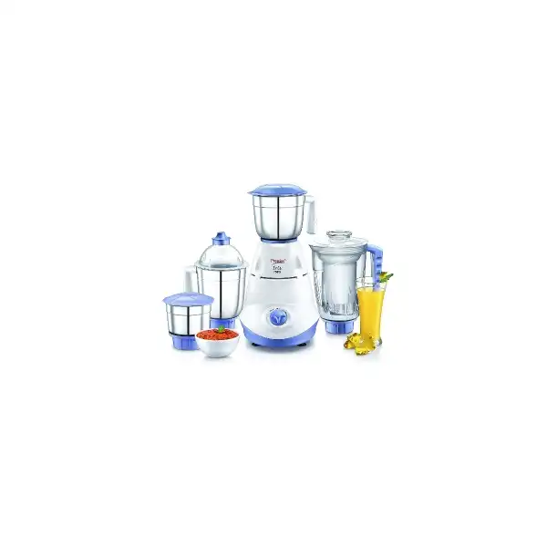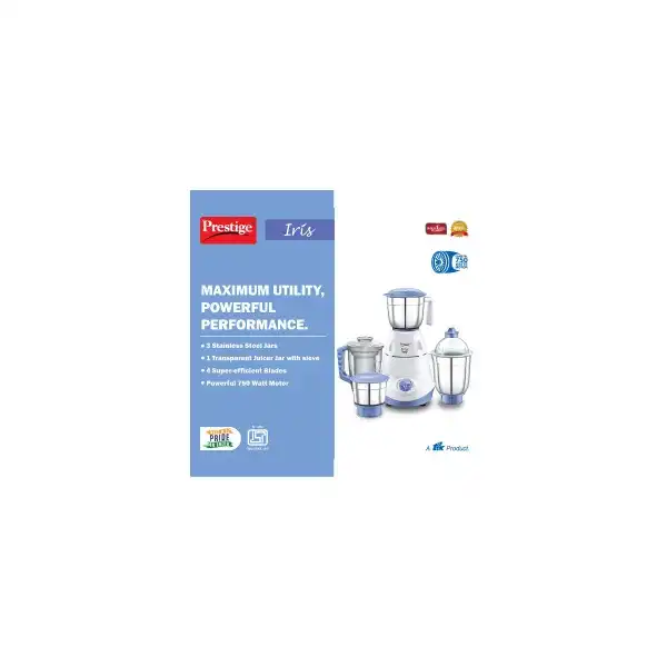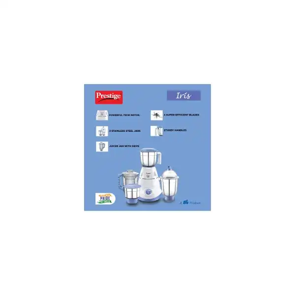 Prestige Iris 750 Watt Mixer Grinder with 3 Stainless Steel Jar + 1 Juicer Jar (White and Blue)